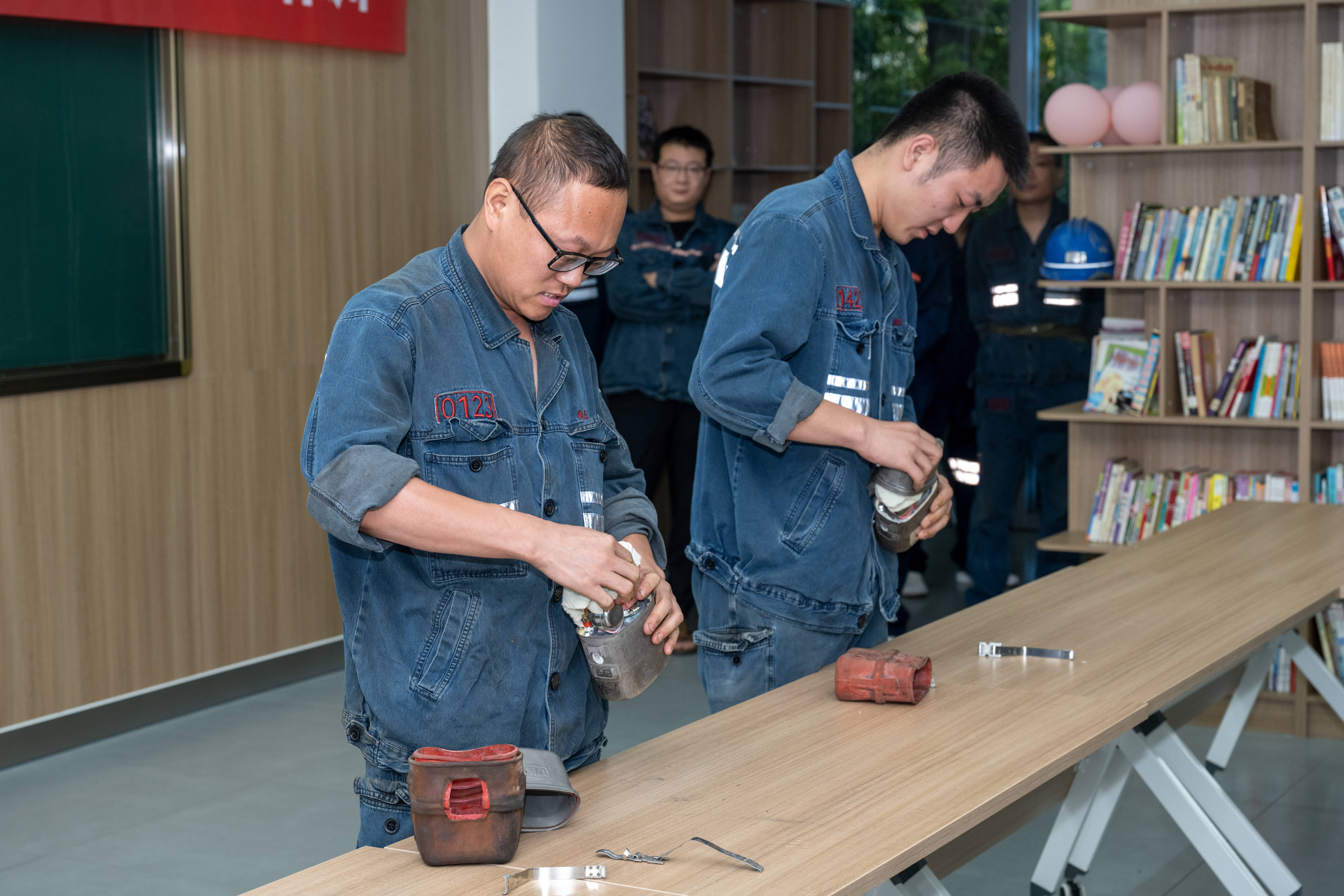 参赛的青安岗员们沉着应战,通过对井下自救器基本知识、结构原理和操作流程的熟练掌握,均有效完成了规定动作。两人一组决出胜负,由暖心志愿者为获胜者送出礼品。