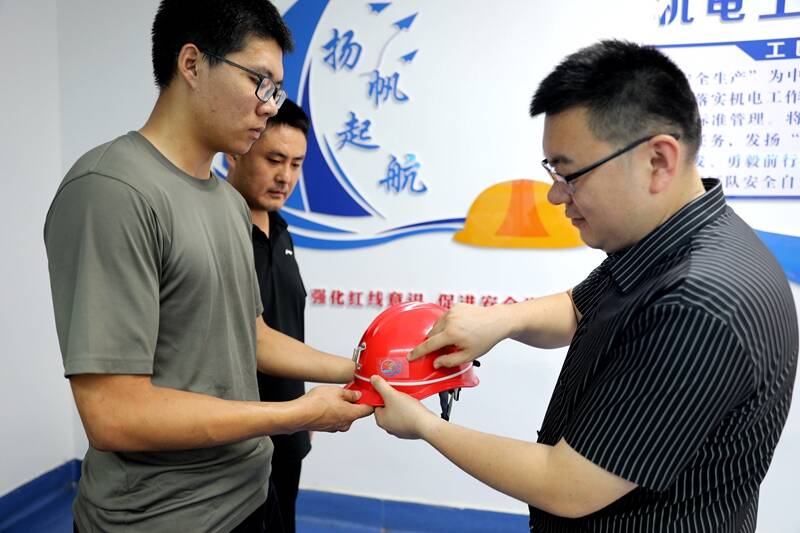 “矿工会统一制作发放了群监员、青安岗、民兵哨帽贴,大家一定要牢记自身职责,在各条战线上发挥好安全生产前沿哨兵作用,为矿井安全发展助力!”兴隆庄煤矿机电工区党支部书记田旭东一边为职工释新昊发放“青安岗”帽贴,一边深切地叮嘱说。