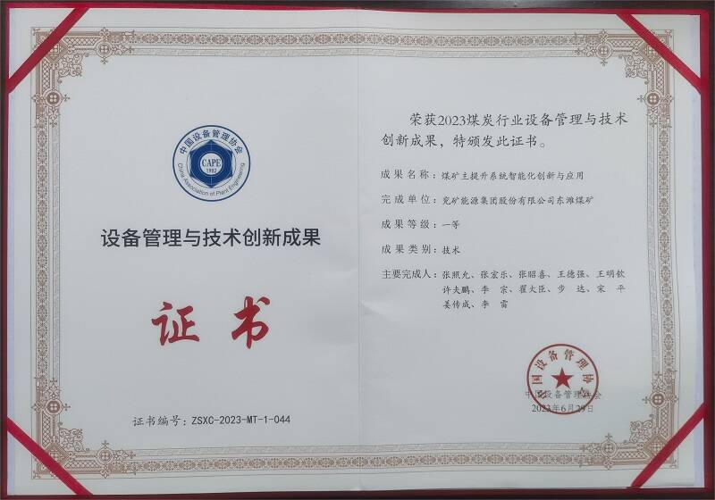 近日,2023行业设备管理与技术创新成果交流大会传来喜讯。东滩煤矿申报的《煤矿主提升系统智能化创新与应用》从1000多项成果中脱颖而出,荣获2023煤炭行业设备管理与技术创新成果一等奖,成为兖矿能源唯一获此殊荣的矿井。