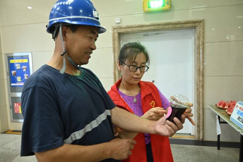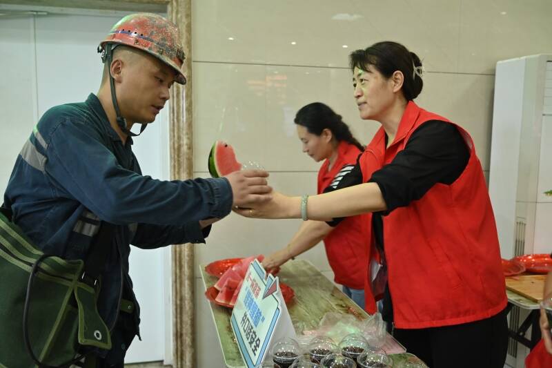 同时,该矿女工协管员为职工师傅们送去了一块块清凉的西瓜,嘱咐他们在一线工作时要劳逸结合、注重安全,并讲解了防暑降温知识,增强职工自我保护意识,让职工师傅们在炎炎夏日里既能把好“安全关”,又切实感受到了关怀与温暖。