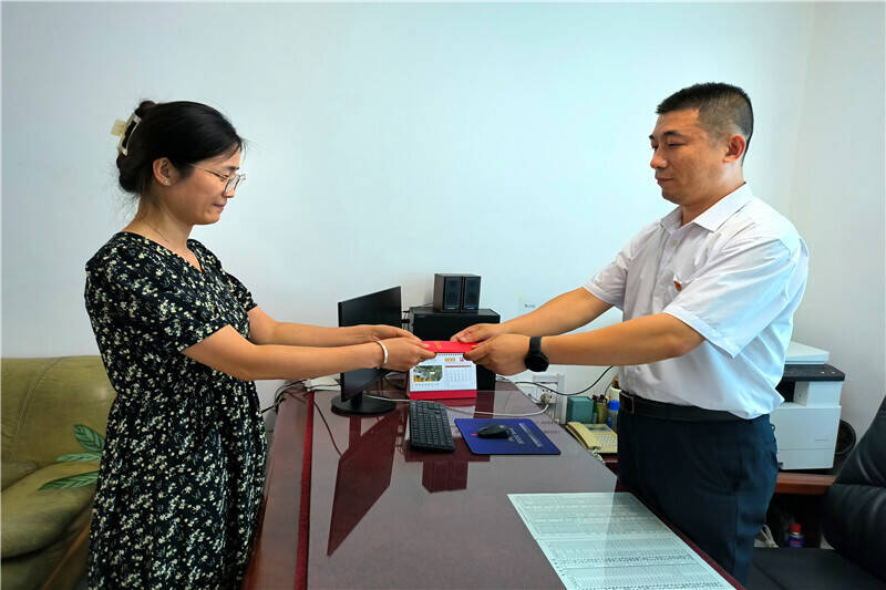 接下来,张昭景郑重的将这本党章双手递给了下一名党员进行接力诵读。就这样,一本党章在党支部9名党员手中传递,他们认真投入,力求将每一个字、每一句话都读得准确、清晰,在场的每一个人都感受到了党员们对党章的尊重和敬畏。声声不同却声声传情,一颗对党忠诚的心也更加坚定。