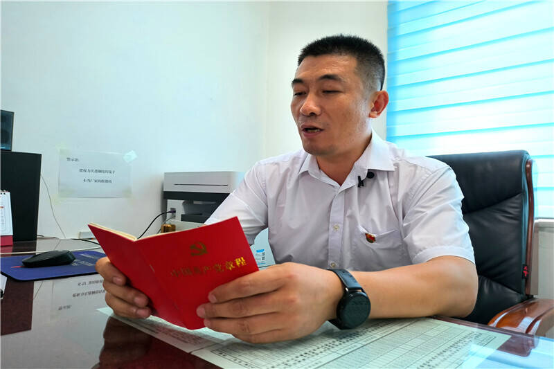 神情严肃认真、全神贯注,声音铿锵有力、抑扬顿挫。在机电管理党支部,该支部书记张昭景手捧党章,一字不错的将一段党章诵读了下来。面对镜头,张昭景坦然自若,“说来也怪,平时面对镜头紧张的要命,但读起党章丝毫没有这种感觉,让我感受到有一种无形的力量支撑着我。”