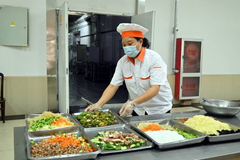 “今天气温较高,凉皮、凉菜都多准备些,提前放在冷藏室内静置一会,让职工吃得清凉爽口……”炎热的天气,除了“清凉大礼包”能够降温,一道道清脆爽口的凉拌菜无疑也是夏日降温的“凉方”。
