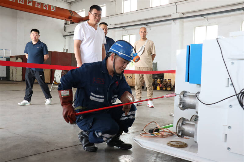 比武现场氛围紧张激烈,选手们克服30多度的高温天气,穿戴整齐、按章作业,沉着冷静、细心排查现场遇到的故障,展现了高超的操作技能和从容比赛的精神风貌;裁判们严格对照《技能比赛评分表》,逐项认真打分;计时员紧盯计时器,准确计时;监督员严肃认真,监督抽签、比赛、打分的全过程,确保比赛公平、公正。