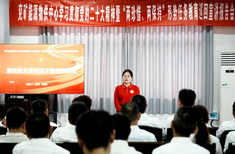 小话题、小故事,让宣讲“接地气”。“2022年,兖矿能源市值突破两千亿大关,荣登全球矿业市值50强……”这是播音主持专业的大学生宣讲员韩玉婷在一季度时的宣讲。她向职工宣讲两级公司的靓成绩,不忘表一表物供人的辛苦付出:业绩频传捷报,市值再创新高,兖矿的光荣榜上又怎能少得了我们物供人的身影。”