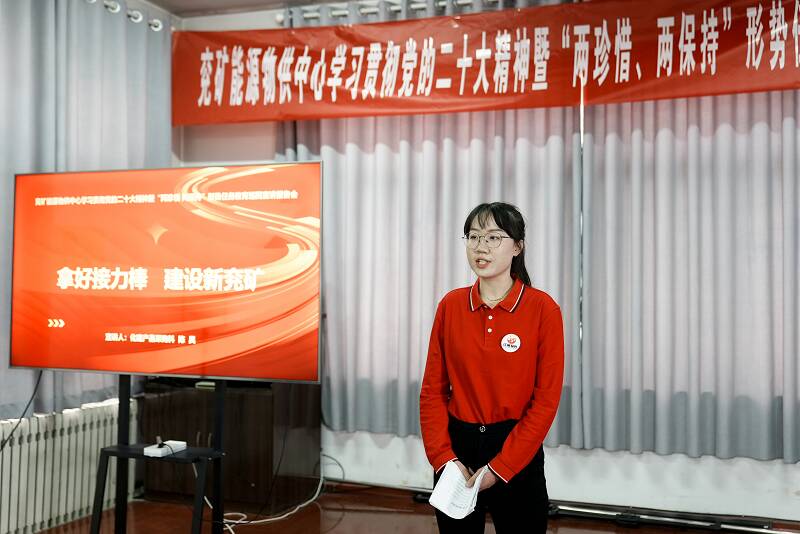 大学生宣讲员陈昊用自己在兖矿长大的温情故事带入,分享感恩之情,抒发奋斗之志,“我愿拿好接力棒,和兖矿共同进步,像我的父辈一样,用我的一生建设兖矿、干好物供!”