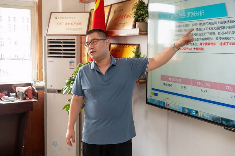 在5316胶顺沿空侧防灭火治理中,他冲锋在前,坚守在防灭火治理一线,根据现场实际研判设计钻孔对采空区隐患点进行处理,采取束管监测、温度检查等方式对采空区气体、温度进行检查、分析,有效消除了煤层自然发火隐患。