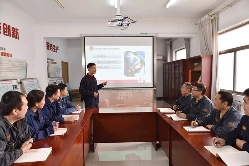 “技术党课、量身打造”。大学生黄俊杰、张朕二人来矿之初只有理论基础,没有实践经验,工作中非常吃力,“刁新文技能大师创新工作室”工作室主要成员殷亮、仇锦龙分别签订师徒合同重点培养,一年的传帮带,二人成长很快。