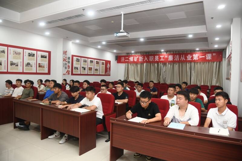 感廉悟廉,感受一次企业廉洁文化。最后,新入职员工到济二煤矿清风正气室进行了参观学习,“观”廉洁从业宣传墙,“听”廉洁从业宣传语,“感”廉洁从业文化教育,进一步感受济二煤矿浓厚的风清气正的清廉文化建设氛围。