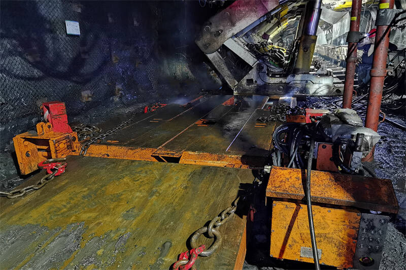 在设备使用过程中,也难免会遇到一些困难,受单轨吊前端驱动长度影响,无法将液压支架直接落在转运平台上,他们积极优化工艺,在转运平台两侧焊接工字钢,用夹板将拖移滑板与转运平台工字钢连接,再铺设正常滑板与拖移滑板连接,解决了支架无法直接落在调移装置上的难题。