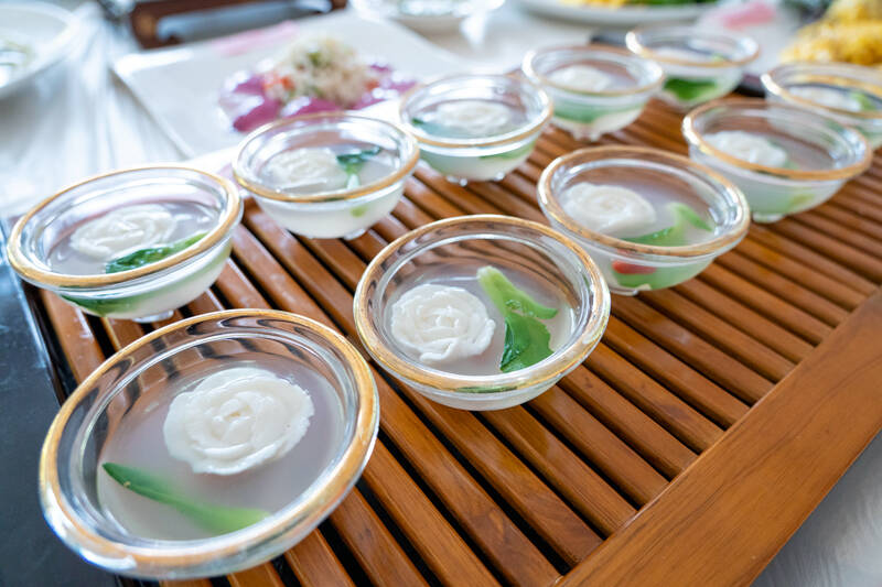 向阳双菌、荷花戏莲、富贵牡丹、翡翠鱿鱼花,一道道热菜令人垂涎欲滴、欲罢不能。天鹅酥、桃山皮蔓越莓月饼、水晶桃花、核桃包,别致的造型、扑鼻的香味,中式面点的魅力得到全新诠释。比武邀请餐饮行业知名专家组成评判组,依据菜肴的色、香、味、意、形、养等6个要素,对选手菜品的创意、刀工、色泽、质地、火候、口味、造型等方面分别进行专业化评分,得出最终比武成绩。