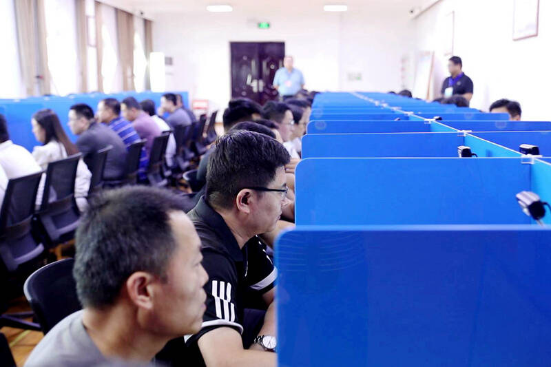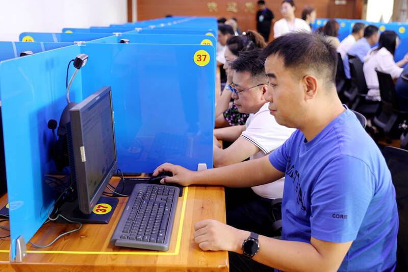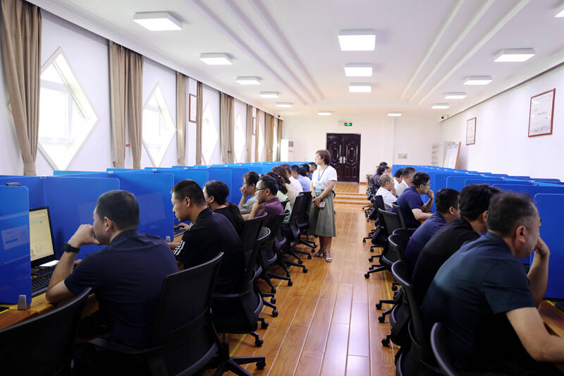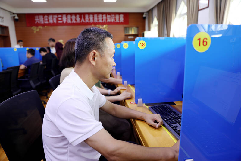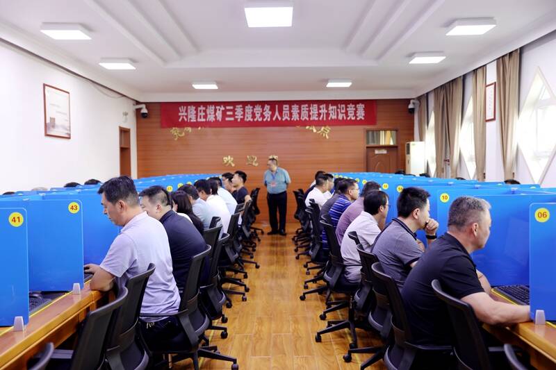 找到新问题,用心解答案。8月16日,在兴隆庄煤矿教培中心一层微机室考场,三季度党务人员素质提升知识竞赛火热进行。签到后的参赛人员将手机静音后放在指定储存箱内,来自该矿各单位的党(总)支部书记、支部委员、支部文书及政工科室人员胸有成竹地坐在考试座位上等待开赛。