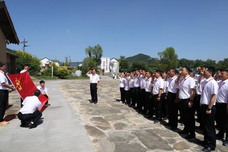 在陈家坡会议旧址,党员们面对鲜红的党旗,同举右手,重温入党誓词,用铿锵有力的声音,坚定的宣誓共产主义信念以及对党无限忠诚、拥护、热爱。