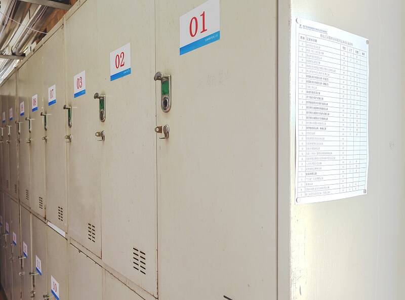 “目前,我们工区通过简单的改造修补,利用澡堂淘汰的更衣箱,贴上标签,把更衣箱变成资料柜,一分钱没花,还实现了废旧利用,解决了资料存放的难题。”