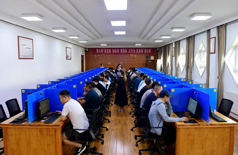 本季擂台赛涵盖井下一线单位、井下辅助单位、地面单位和群安哨协等各类人员,试题内容涵盖两级公司及矿文件精神、形势任务教育、“同·兴”党建内涵、党员“应知应会”、安全生产标准化、“一规程三细则”、各系列双卡试题、安全知识、职工行为规范、企业文化、6S管理,以及各专业知识等内容。参考人员登陆网上答题系统,结合日常掌握知识认真答题、争分夺秒。擂台赛现场计时答题、电脑计分排名,确保了比赛公平公正。