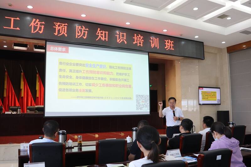 培训班专门邀请了济宁医学院附属医院创伤骨科、创伤中心及急诊外科主任王海滨和济宁市技师学院培训处、济宁市人社局工伤预防培训专家周群益进行授课。