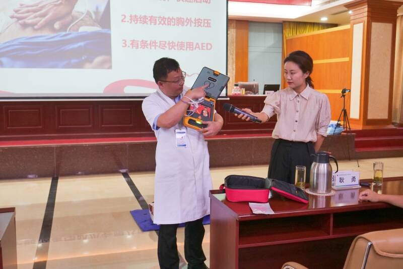 同时,现场演示了AED除颤仪的使用方法,并指导胸外按压、人工呼吸等救治动作要领,让大家在实践中迅速掌握基本救人方法。