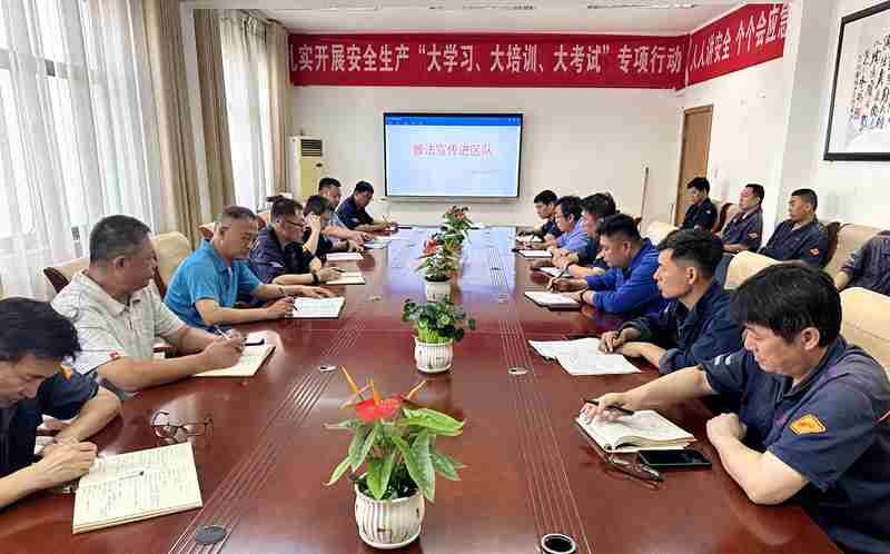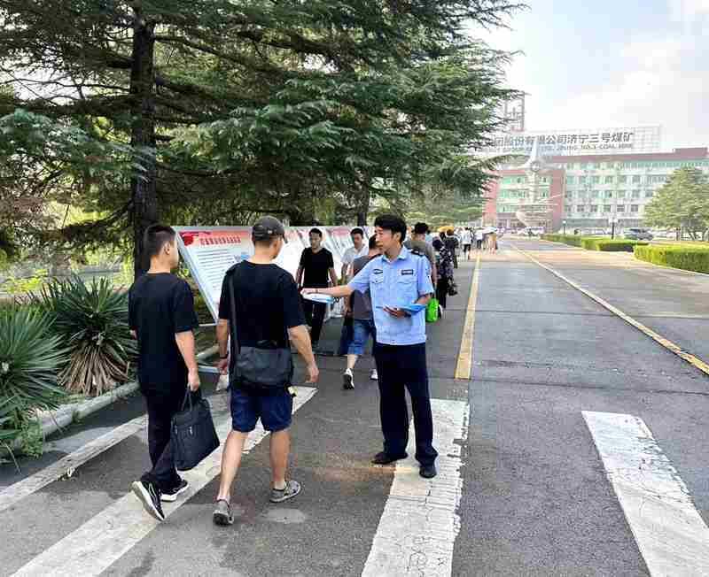 与济东公安分局联手,在矿主要道路和重要场所开展普法宣传,布置宣传展板25块,内容涉及防范电信诈骗、缉枪治爆、禁毒、反邪教四个板块。利用职工上下班时间,组织人员集中宣讲国家《反电信网络诈骗法》等法律法规和真实案例,现场发放反诈知识和典型案例宣传彩页。
