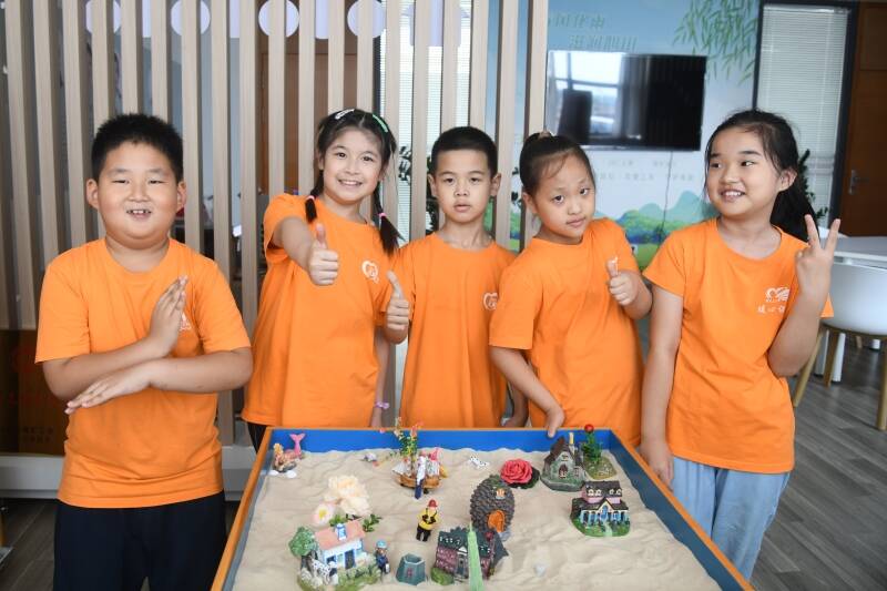 绘画、折纸、泥塑、刮画、扭扭棒……丰富多彩的手工课发挥孩子们天马行空的想象,提高他们的动手能力。课堂上,大家一起学习、互相帮助。沙盘游戏让孩子们懂得团队合作的力量,同时,学习了如何遵守规则,树立规矩意识。