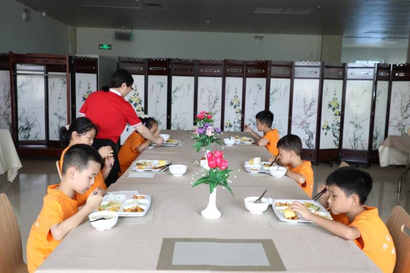 “守纪律、讲卫生,饭前洗手不能忘;吃多少,拿多少,珍惜粮食做榜样。”孩子们践行着志愿者老师的教导。