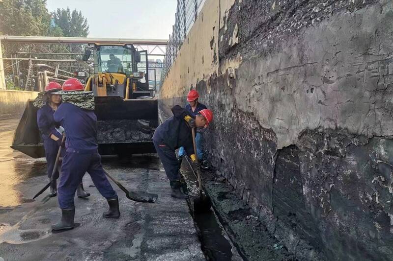 夏季除了炎热外,再就是雨水多,为避免运煤路和煤场内排水沟堵塞,造成污水横流,影响环保治理形象,定期清挖是一项必须的工作。因煤场内和运煤路排水沟规格不一,就需要分别施策。为尽量减少人工、避免中暑,煤场内水沟和沉淀池采用机械清挖;运煤路的水沟又浅又窄,为达到清理效果,只能选择人工清挖。