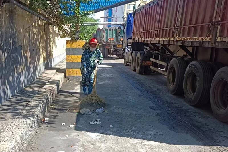 装车站、装车站南北和煤泥场卫生是环保治理重点,特别是装车站南北卫生,可谓是东煤场的“脸面”。每日清晨,装车站女工到达岗点,第一件事就是用水管把装车站南北进行冲刷,把前一夜发运遗留的煤尘和车辙印冲刷干净,让装车站的“容貌”在微露的晨曦中焕然一新。煤泥场的卫生清扫就交给清扫车和洒水车了。相较于其他工作,对于黄启伟和殷召明而言,是相当专业。每天他们都要比其他工友早到一小时,用清扫车先把东西煤场清扫一遍,再去运煤路。在煤泥发运期间,洒水车和清扫车相互配合,黄启伟和殷召明也是下了这个车,再上那辆车,忙碌归忙碌,但再看煤泥场和装车站南北的卫生干净整洁,一种成就感和自豪感油然而生。