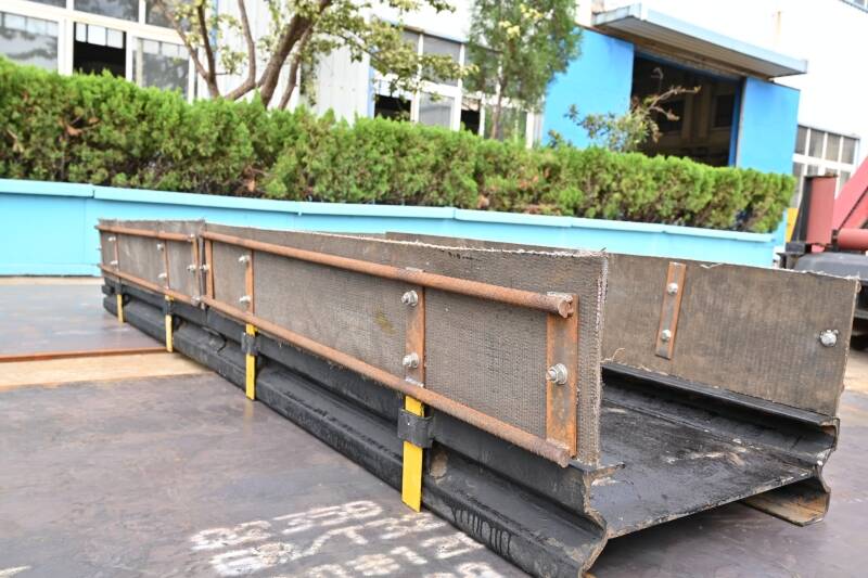 图为:轻型防崩弹低成本溜槽挡煤装置。简易设计、废旧取材既缩减了材料成本,又降低了运输设备损坏率和胶带的冲击破坏,每年可为矿井节约生产成本20余万元。