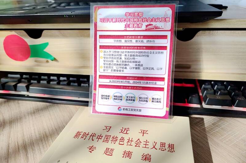 深化于学,上好理论课。该支部成立领导小组,及时制定《主题教育学习规划》,注重全面学、重点学、带头学和自学相结合。通过“三会一课”、主题党日等活动组织全体党员学习习近平新时代中国特色社会主义思想主题教育相关讲话精神,统一思想认识,明确目的意义。开展“学思想促实干”晨读会,由党员干部每日带头通读党的二十大报告、党章、《习近平新时代中国特色社会主义思想专题摘编》等内容,带动全体党员学深悟细笃行。制作主题教育明白卡,将主题教育总要求、根本任务、具体任务等相关内容制作成卡片,方便党员干部携带学习。定期从“灯塔-党建在线”“学习强国”、微信公众号等媒体收集资料,组织学习,做到紧跟形势,推动党的创新理论覆盖全体党员。