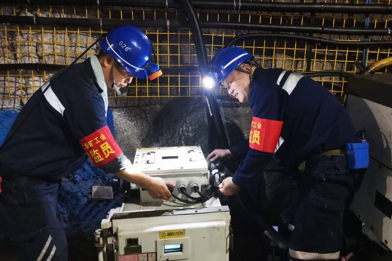 在井口大厅,女工协管员们为职工师傅认真缝补破损衣物,同时不忘对职工进行安全叮嘱。互动解压小游戏锻炼了职工的协调能力和集体协作能力,同时舒缓了他们的工作压力和紧张情绪。在井下,群监员们也时刻发挥“安全哨兵”的作用,积极各类排查安全隐患,有效防范和坚决遏制安全事故发生,确保设备安全可靠运行,为矿井安全生产保驾护航。