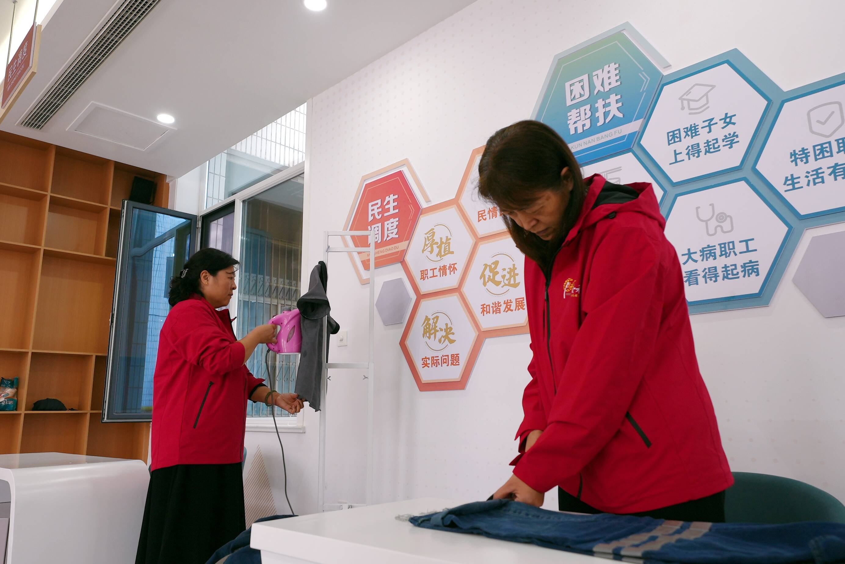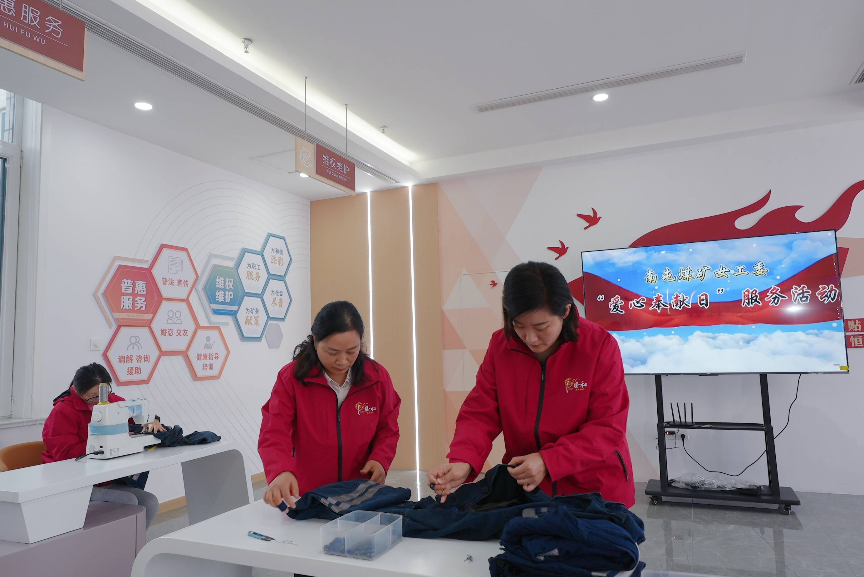 “我们的‘爱心奉献日’活动每月固定开展一次,不仅可以提供工作服的修补,还可以为孤寡老人、困难家庭上门帮扶,”该矿工会女工委主任孙苗介绍道,“我们还动员各基层女工委组织开展符合单位实际的爱心奉献,全方位、全覆盖为全矿干部职工提供‘暖和’牌暖心服务。”