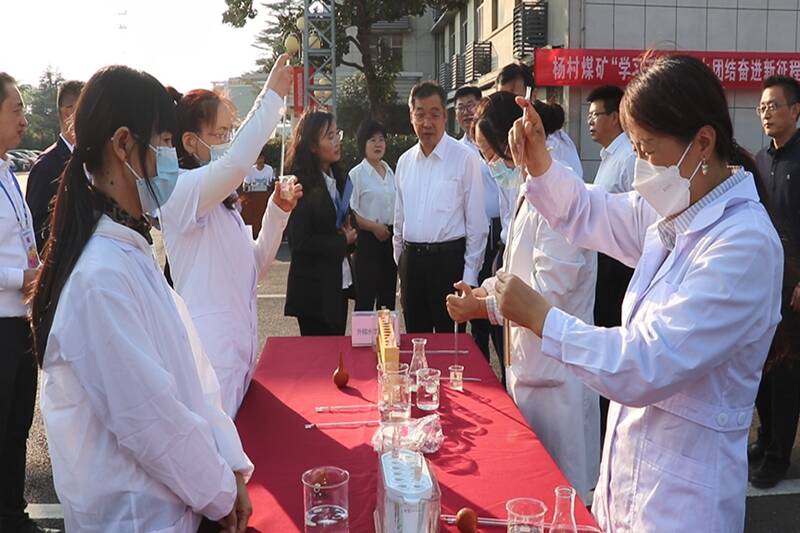 在声声“擂鼓”的助威下,35KV变电所电气接线、光学瓦斯检定器组装、库仑法煤中全硫的测试、外排水氨氮检测、花样面点制作5个项目的比武擂台赛同时打响。