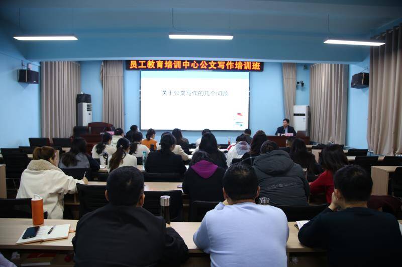 12月8日,教培中心举办公文写作培训班,近三年新入职员工和各科室文字写作人员参加了本次培训。