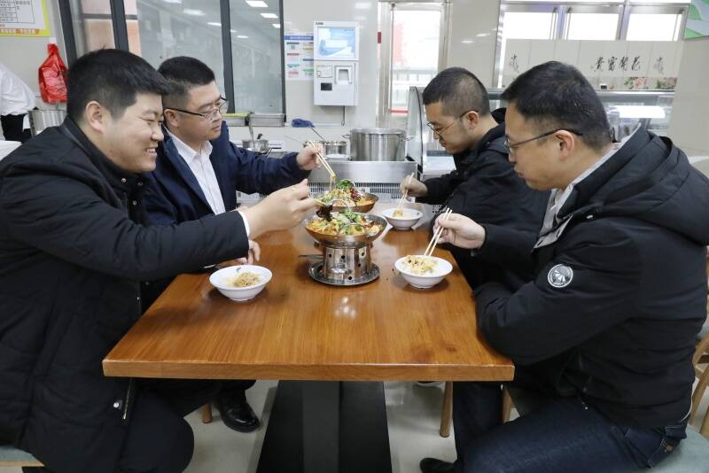 每次下班时间,来光顾小火锅的职工越来越多,锅顶升腾起的白烟和锅底燃烧着的火焰相映成趣,给寒冷的冬天增添了温暖。职工们有的两人或三人围聚一桌,要上两个小火锅聚餐,一起谈谈工作、生活,氛围温馨又热闹,不知不觉间整个人都暖和了起来,食堂有了家的味道。