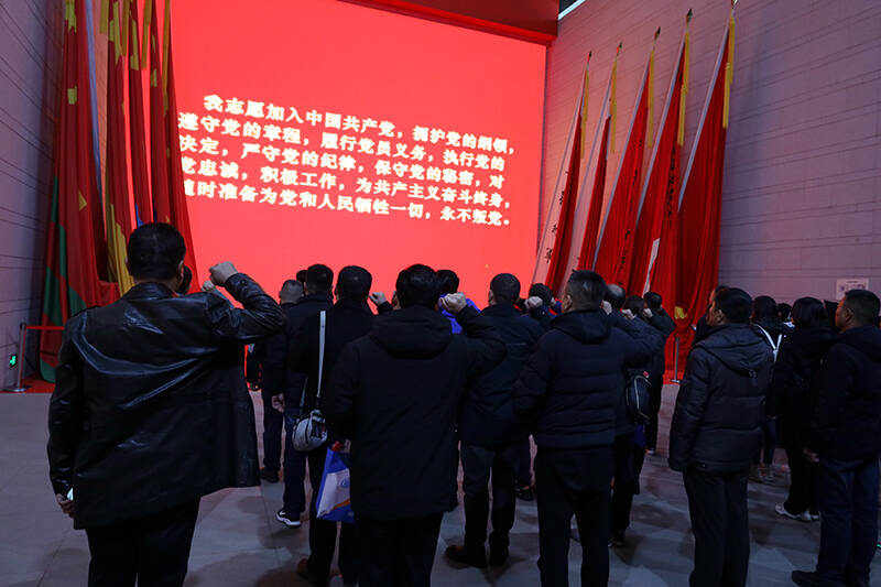 铁道游击队纪念馆内,一张张图片、一件件实物、一段段影像,生动展现了革命先烈们在抗日战争中不畏强敌、英勇抗争的坚定信念和顽强意志。通过观看展陈史料、倾听历史故事,全体党员干部深刻感悟到革命先烈赤诚报国、不怕牺牲、机智灵活、勇于亮剑的铁道游击队精神。在胜利大厅,全体党员在党旗下重温入党誓词,致敬革命先烈,激荡初心使命。在铁道游击队纪念碑下,集体合影留念,抒发爱国情怀,展现奋斗姿态。