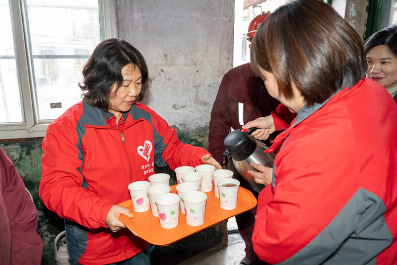 为方便职工选择,贴心的志愿者还将姜茶分为有糖和无糖两种,放置在井口候罐大厅,24小时为职工提供温暖热饮服务。