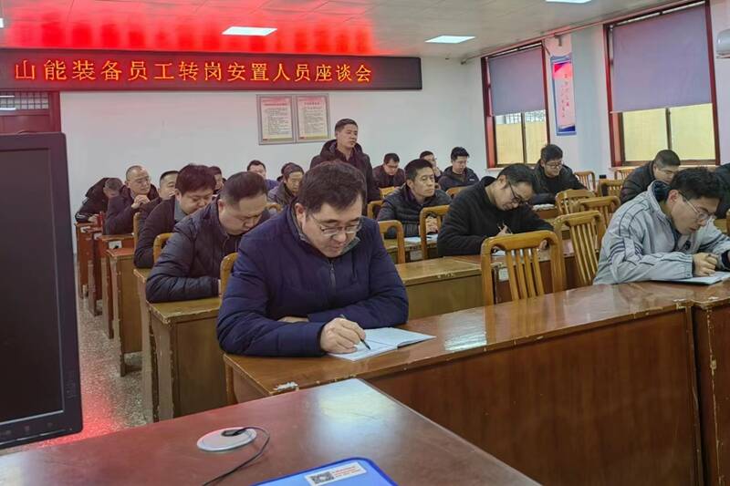 12月12日,杨村煤矿在教培中心召开山能装备员工转岗安置人员座谈会。