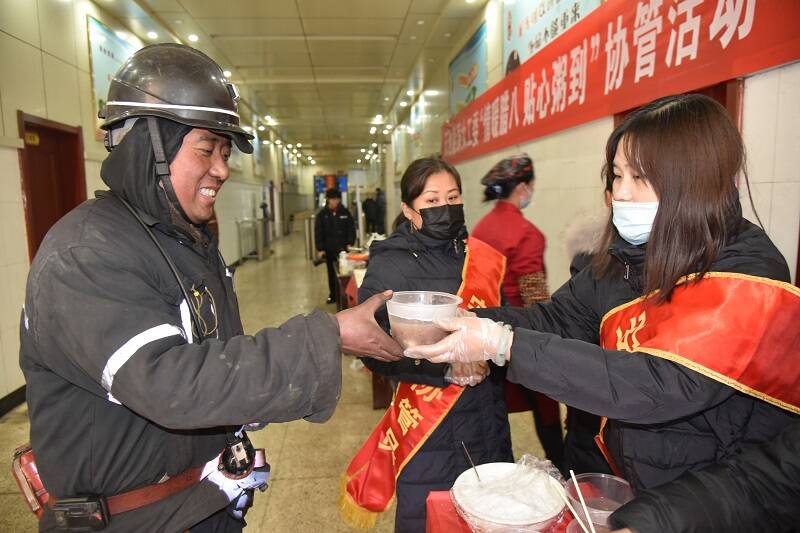 “师傅,您辛苦了,快来喝碗腊八粥,去去寒气暖暖胃。”活动现场暖意融融,女工协管员郭红将腊八粥送到职工们手里,并叮嘱他们牢记安全,遵章作业,平安回家。职工们喝着碗中香甜可口的腊八粥,听着温暖的祝愿,脸上露出了灿烂的笑容,纷纷表示一定牢记安全嘱托,上标准岗、干标准活,为推动矿井高质量发展贡献自己的力量。
