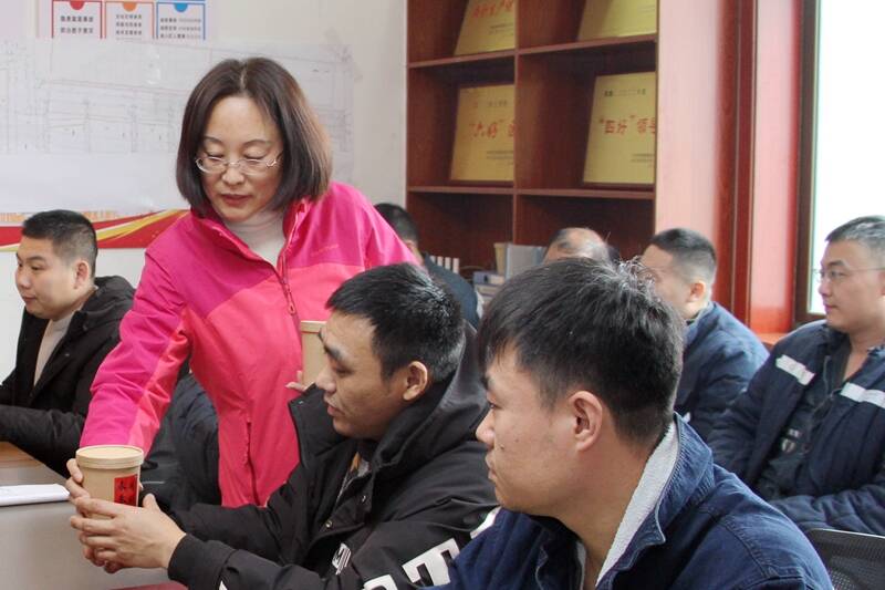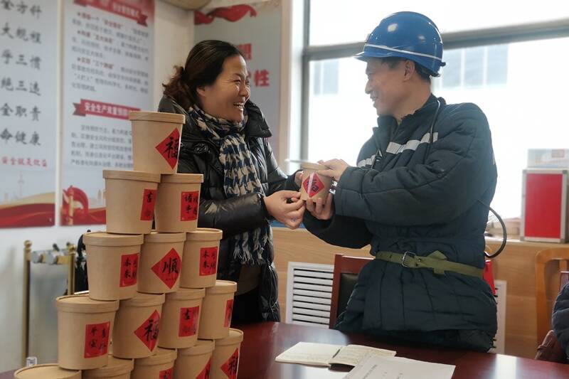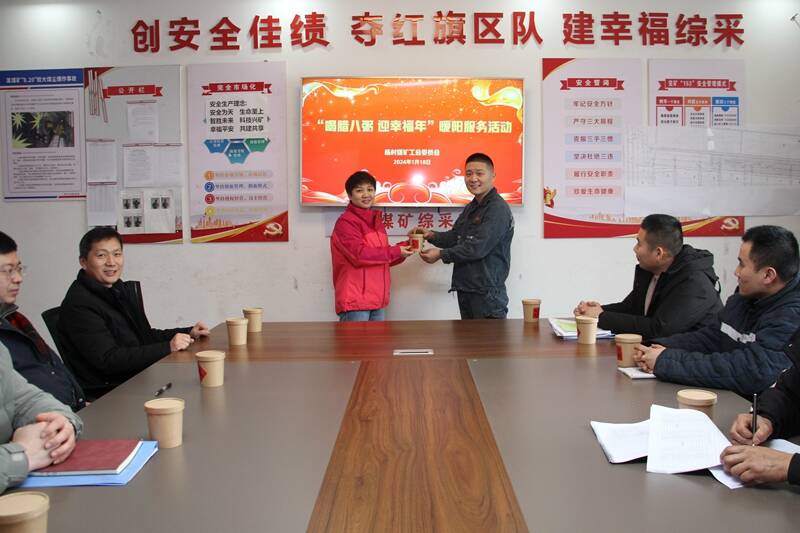 在活动现场,该矿女工协管员们将一早熬制好的腊八粥送到职工们手中,叮嘱大家要心系矿井发展,过节不忘安全,做家庭和企业的放心人。