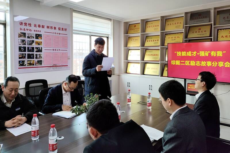 在兴隆庄煤矿综掘二区会议室内,一场“技能成才·强矿有我”励志故事分享会正在进行,荣获山东省“技能兴鲁”职业技能大赛暨山东能源集团职业技能竞赛二等奖的综掘机司机王成龙,结合自身经历从不同角度、不同层面讲述了在学习、工作、实践、创新中的青春故事,展现新时代新青年的精神风貌。