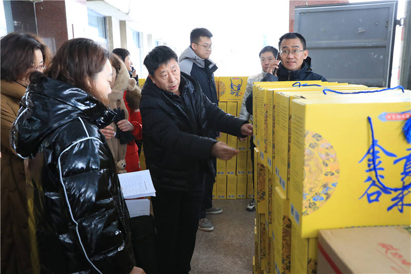 一份礼品,一份关怀。沉甸甸的福利拿在手中,暖在心里,大家的喜悦之情溢于言表,热情温暖的氛围漫过了冬日的严寒。