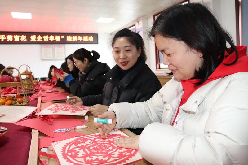 透过窗花,青年职工个个眸光熠熠、笑脸盈盈,一个红红火火、龙腾虎跃的新年呈现在大家眼前。