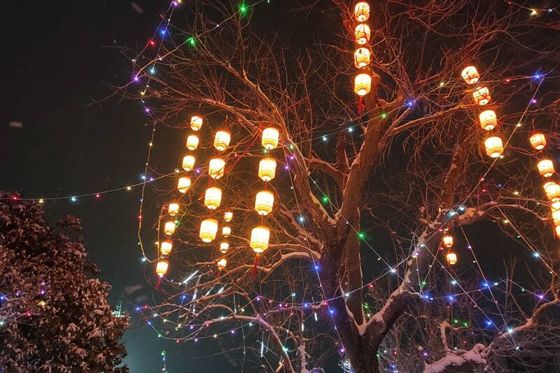 龙年大吉千家喜,春色满园万象新。在春节来临之际,兴隆庄煤矿在工广区、办公楼前悬挂了红灯笼、霓虹灯,在树干上缠绕了灯带,树枝上挂满了各式各样的彩灯,矿井处处洋溢着浓浓的“年味”。