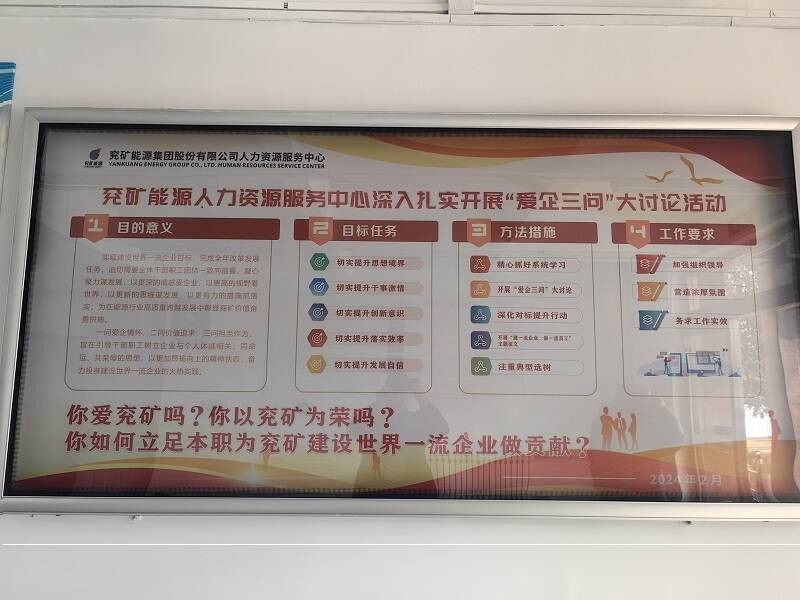 你爱兖矿吗?你以兖矿为荣吗?你如何立足本职为兖矿建设世界一流企业做贡献?近日,作为贯彻落实两级公司年度工作会议精神的重要载体和重要举措,“爱企三问”大讨论正在人力资源服务中心党支部上下开展得如火如荼。
