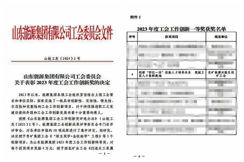 近日,山东能源集团工会召开2023年工作总结表彰暨2024年工作动员大会,表彰了一批具有创新性、实效性、领先性、示范性和完整性的工会工作创新项目。兴隆庄煤矿工会申报的《创新“四位一体”技能人才培养体系筑就工匠人才集群高地》在此次评选中脱颖而出,荣获“2023年度工会工作创新一等奖”。