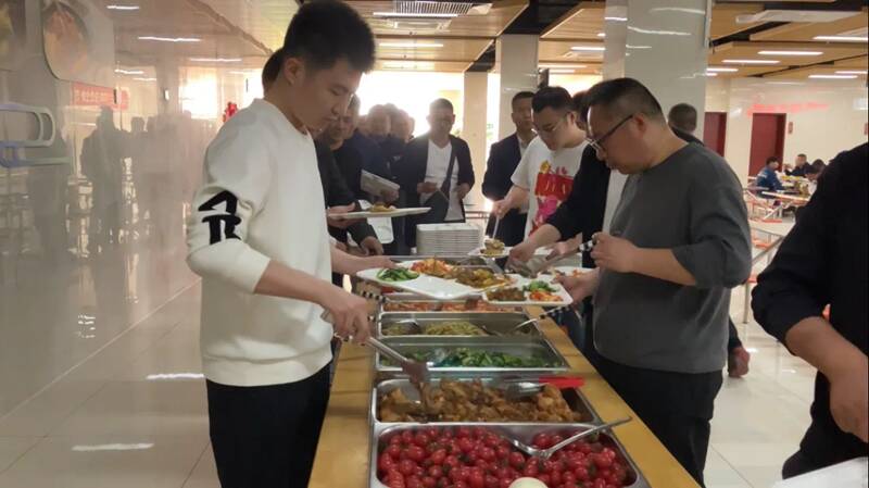 “欢迎新同事在餐厅就餐,我们将以诚心诚意、可口饭菜为大家服务!”食堂二楼餐厅,自助餐摆放整齐,各色菜肴香味四溢,在招呼大家享用美食。新同事们有说有笑,边品尝美食边交流看法,兴高采烈分享来到万福的所见所感。