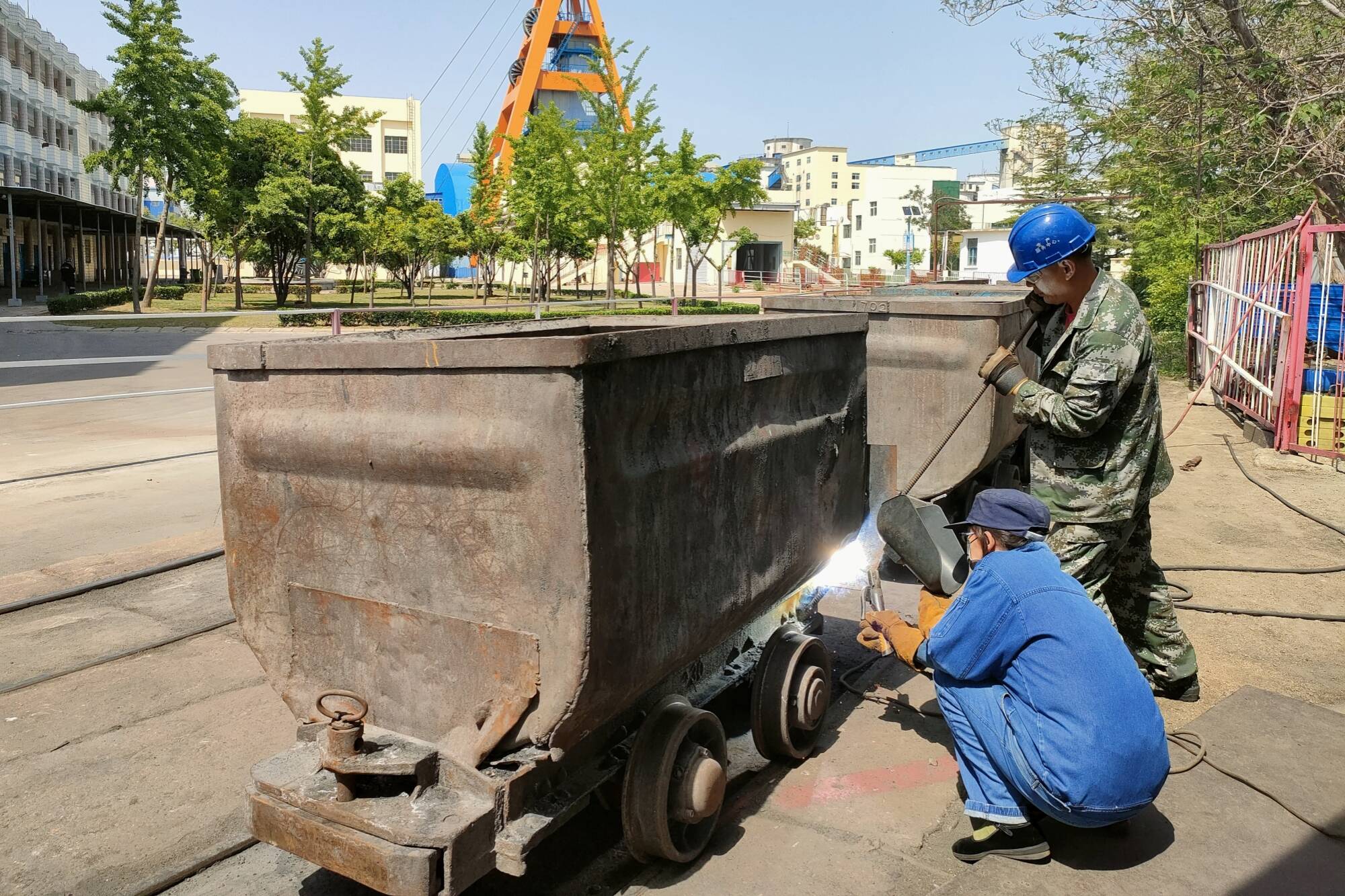 面对矿车维修过程中工序繁多、技术难度大的挑战,矿车组检修人员展现出高度的专业素养和团队协作精神。他们耐心拆卸矿车轮及内部轴承,清洗锈蚀部分,加注黄油后重新组装;针对车身变形问题,他们集思广益,利用千斤顶、液压矿车整形机等工具进行精细整形修复,有效延长了矿车的使用寿命。在修补车皮时,他们巧妙地利用边角废料进行焊补,并自主研发设计加工矿车更换的油盖、压盖、销子等零部件,显著降低了材料成本。