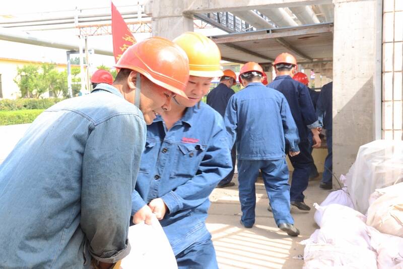 伴着防洪抢险警笛,各演练专业组迅速奔赴主副井口、南北风井、35KV变电所、泗河河堤等地点进行防洪抢险,坚决阻止洪水的侵袭。