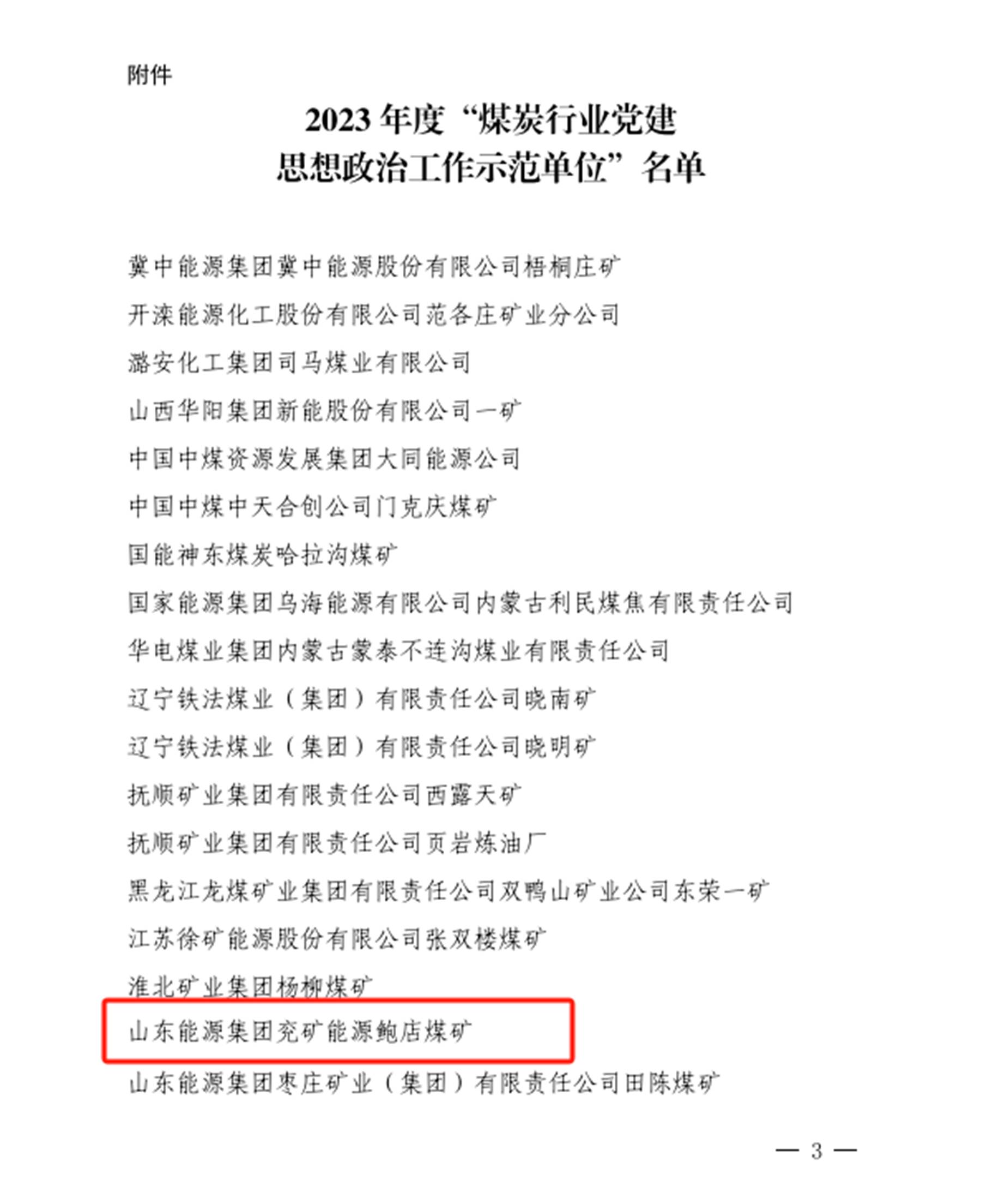 近日,从中国煤炭职工思想政治工作研究会传来喜讯,鲍店煤矿被授予2023年度“煤炭行业党建思想政治工作示范单位”称号。据悉,山东能源集团仅两家单位获此殊荣。
