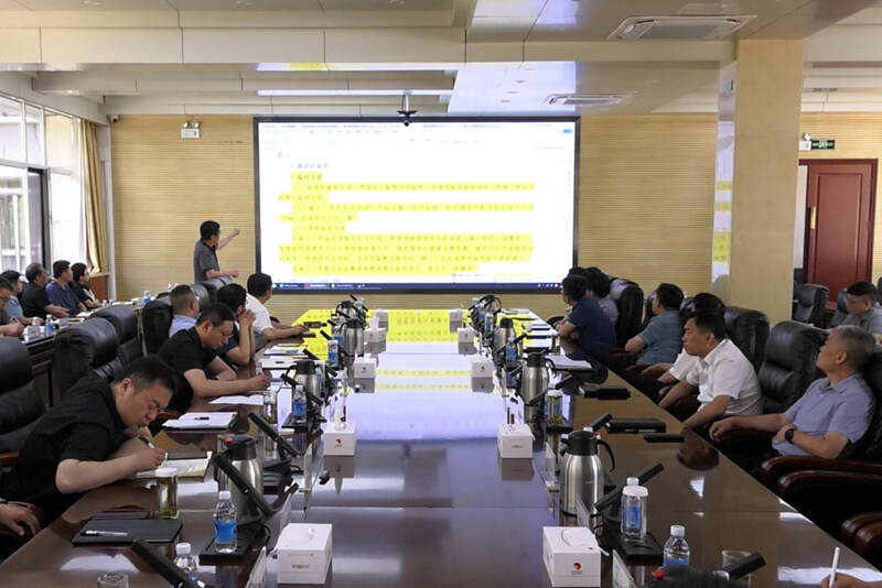 这是5月27日鲍店煤矿召开安全生产周例会时的场景。该矿安监处主任工程师刘成章从施工工艺、支护设计、安全技术措施等多个方面向与会人员讲评了一份掘进专项施工安全技术措施,系统细致地讲解了技术措施的优缺点,分析了如何从标准化、技术和安全管理等方面提高措施编写质量。