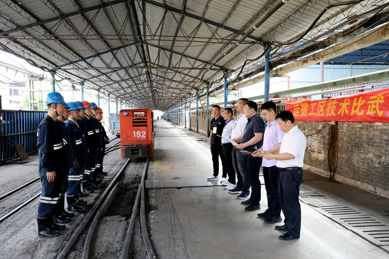 在该矿井下电机车司机比武赛场上,伴随着现场发令员鸣枪,吹哨向对车处示警,比赛开始计时……对车结束后,裁判员严格按照标准量取参赛选手的对车距离,对单项运行对车结果进行记分、记录成绩,通过激烈角逐,用成绩说话,选拔优秀选手。